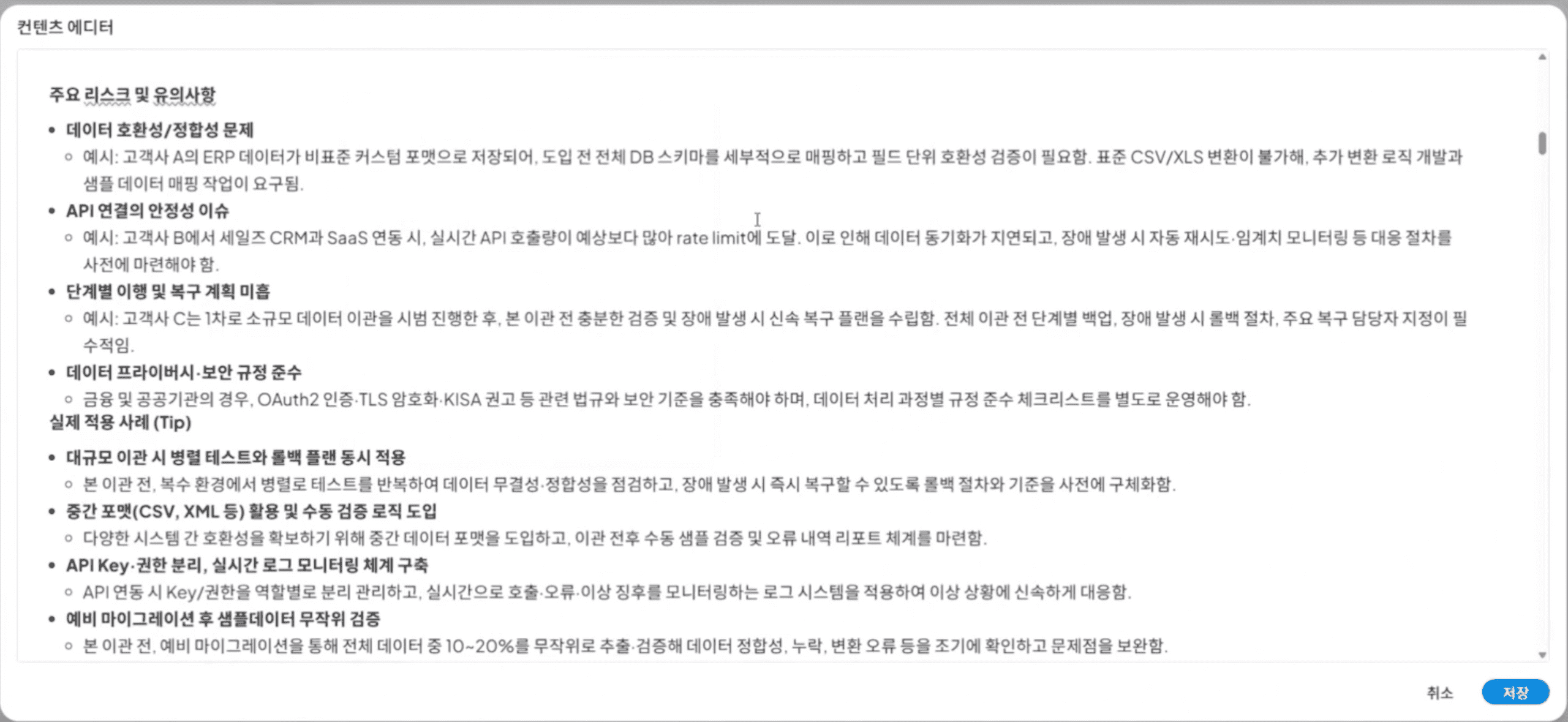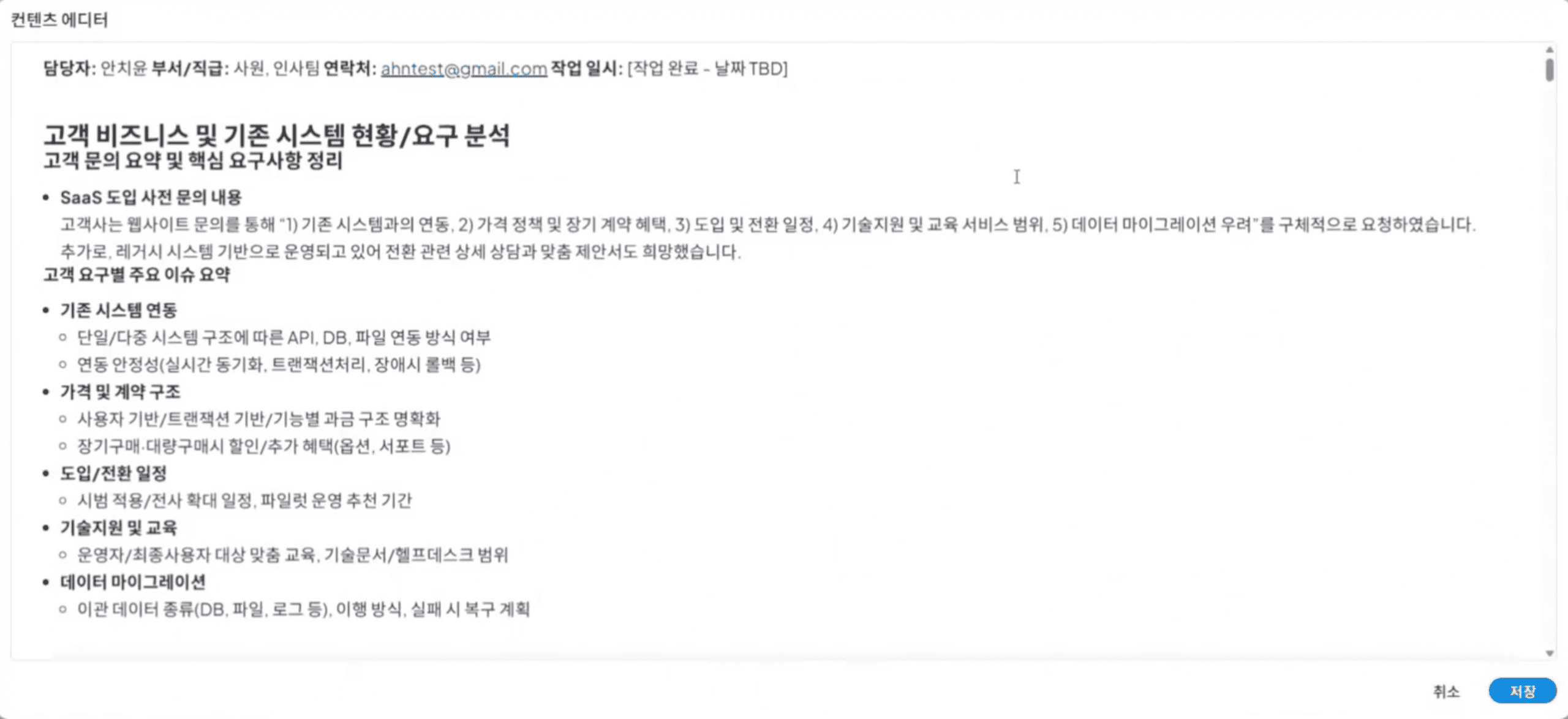 해당 리포트를 클릭하면 세부적인 내용을 확인할 수 있으며, 일부 내용중 수정이 필요한 사항이나 추가해야될 사항에 대하여 작업을 진행할 수 있습니다.